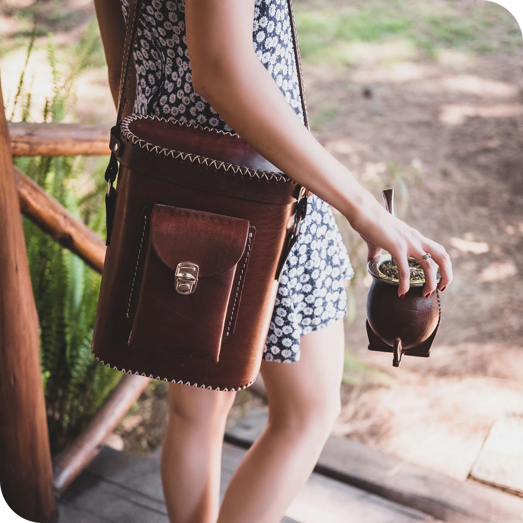 Bolso matero (diseño con bolsillo delantero) de cuero, con divisor en su interior.