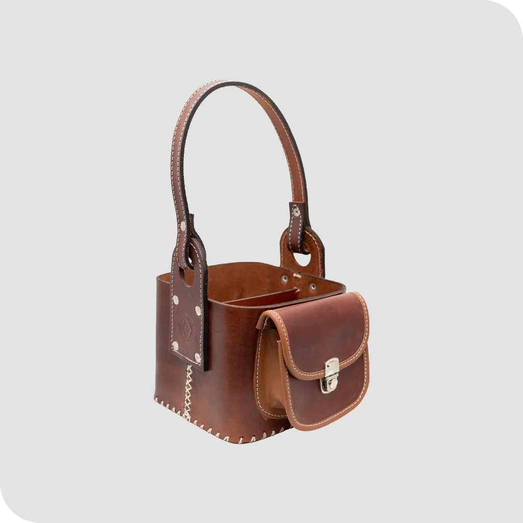 Bolso matero estándar 4x4 de cuero con bolsillo lateral y divisor en su interior.