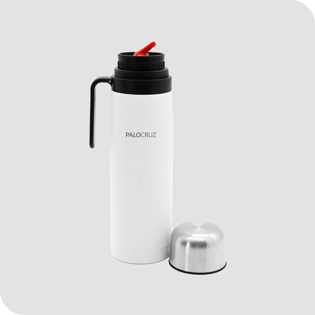 Termo de acero 1 litro pintado con pico vertedor (negro/blanco) + personalizado.