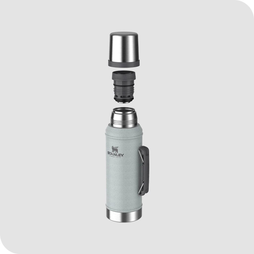 Termo STANLEY Classic, su capacidad es de 950ml, con manija y pico cebador.